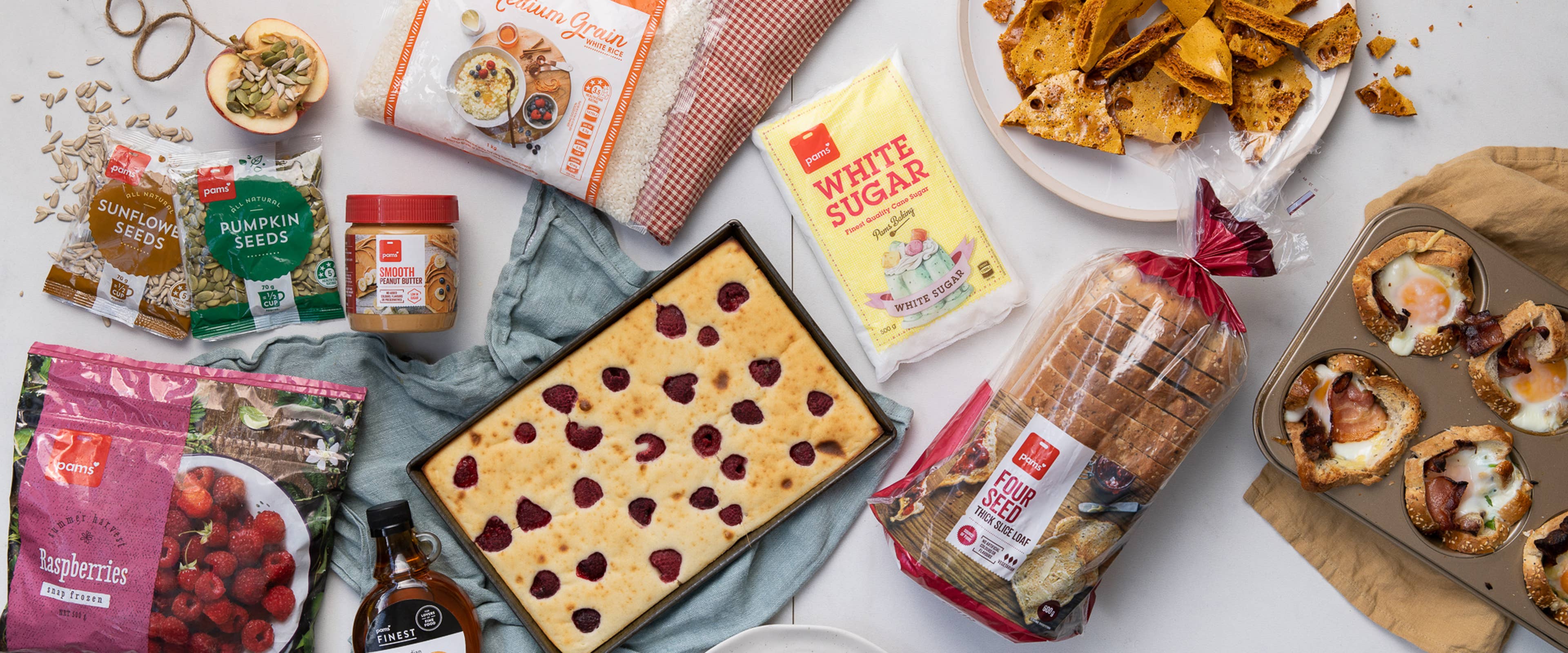 Our sheet pan pancakes are the ultimate easy and delicious recipe for kids. All you need to do is prepare a bottle of Pams Pancake Mix and pour it into a small, greased sheet pan. Scatter over a handful of Pams Frozen Raspberries (or other frozen fruit on hand) and lightly press them into the batter. Bake at 200℃ for 15 minutes, or until golden. Cut into squares and enjoy! These are great for breakfast, dessert, or even a tasty snack!