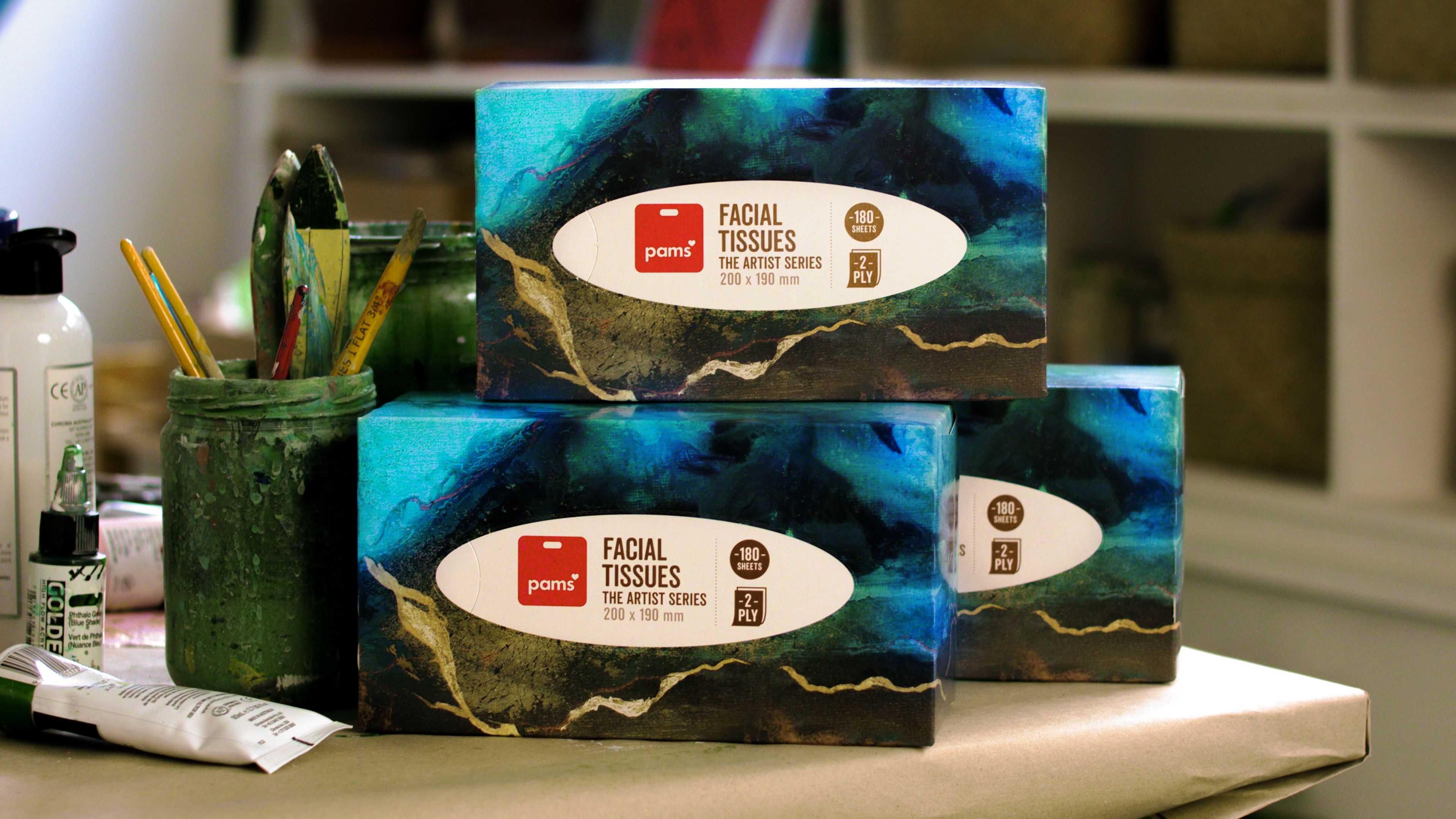 A tissue box is the perfect canvas to bring a piece of art into your home. Here at Pams, we’re excited to share with you our Artist Series – a selection of tissue box art created by emerging young New Zealand artists and designers. We partnered with 3 local artists to create packaging for the tissues surrounding the theme of ‘New Zealand, Our Home’.