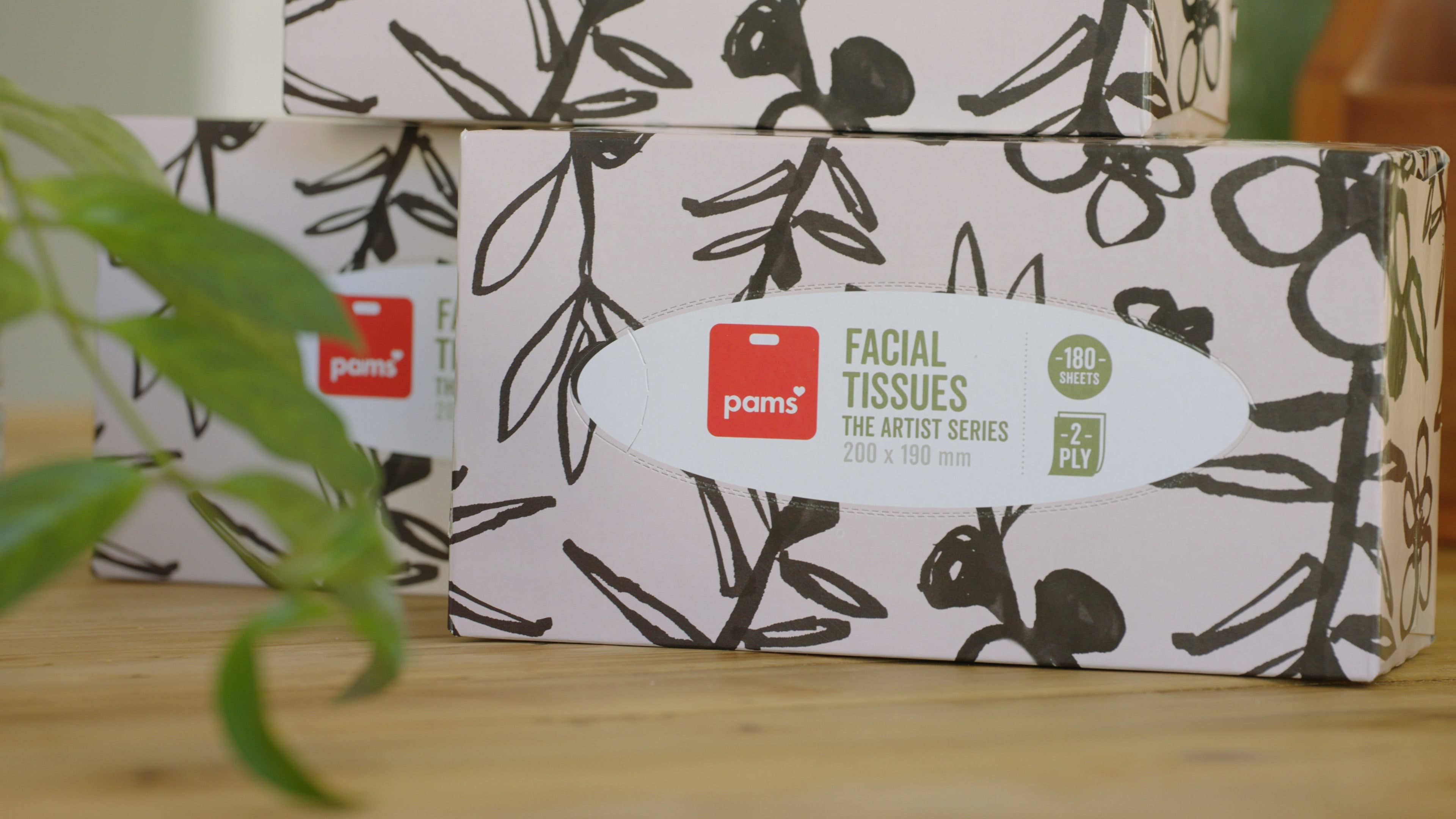 Soft, feminine, and whimsical combined with abstract, bold and colourful – Bron’s curiosity for life is evident in her design and illustration work where she takes inspiration from artists both historic and contemporary. She wanted her tissue box art to be something simple, beautiful, and Kiwi, so people recognise it with fond memories.