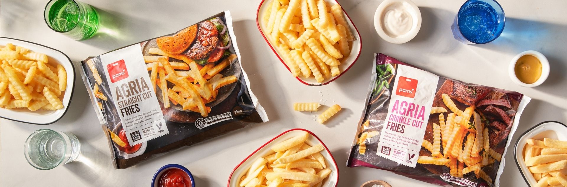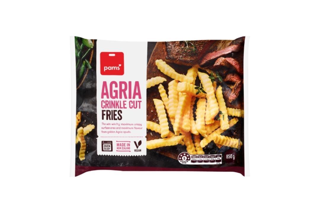 Soft and fluffy on the inside, satisfyingly crunchy on the outside, and ready in just 20 minutes: Whether your prefer classic steak cut, or crispy crinkle cut, Pams Agria Fries are a heat-and heat-staple, and the perfect accompaniment to any meal. Made right here in Aotearoa using premium home-grown agria potatoes and our delicious vegan recipe, it always pays to have these guys on hand.