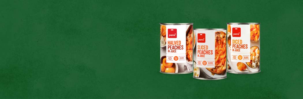 Sliced, Diced or Halved - however you like them, Pams Peaches have an exciting new look!