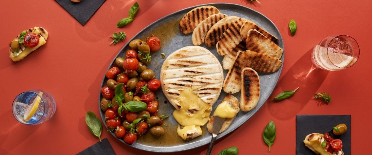 We love grilling meat and veggies on the barbeque, but have you ever heard of cheese on the hot plate? A grilled wheel of camembert is the perfect addition to a summer platter, with ooey-gooey cheese pulls and smokey flavours. Combined with the zesty tomato and olive mix, and a handful fresh basil leaves, this dish will be your new summer go-to!