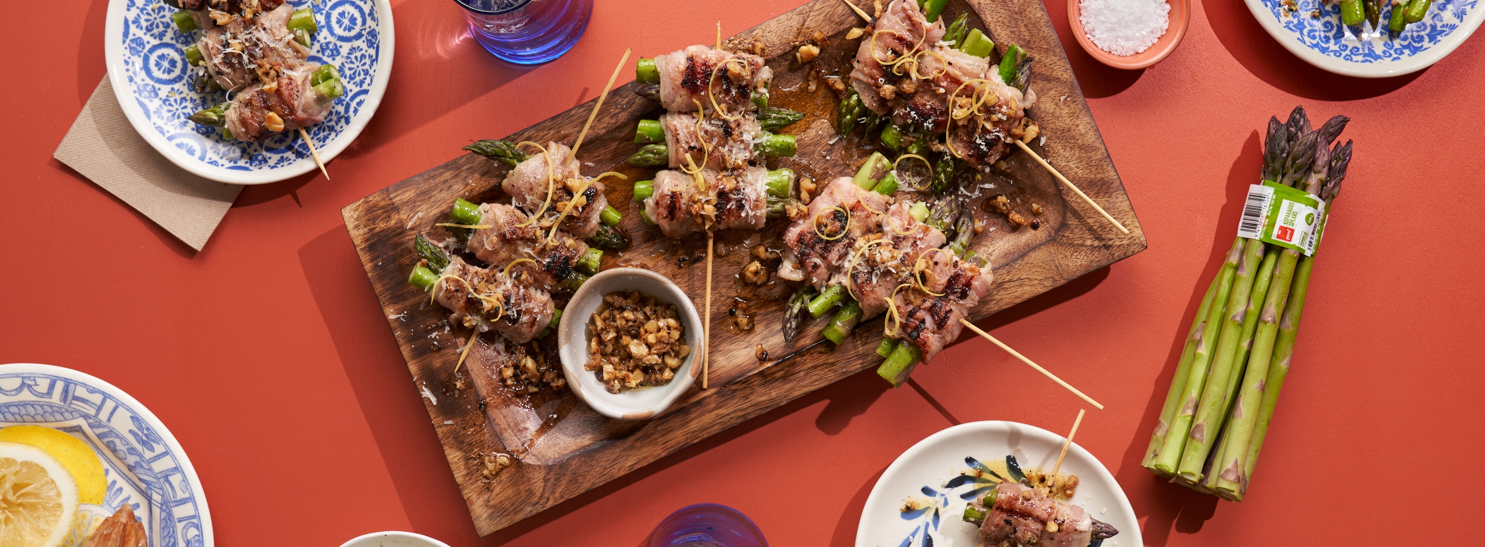 This combo screams summer, with its smokey, crispy bacon and tender asparagus stems. Not to mention the zesty walnuts and moreish parmesan shavings. Super quick to whip up the night before and ready to be grilled within minutes - these BBQ skewers will be a fan favourite!