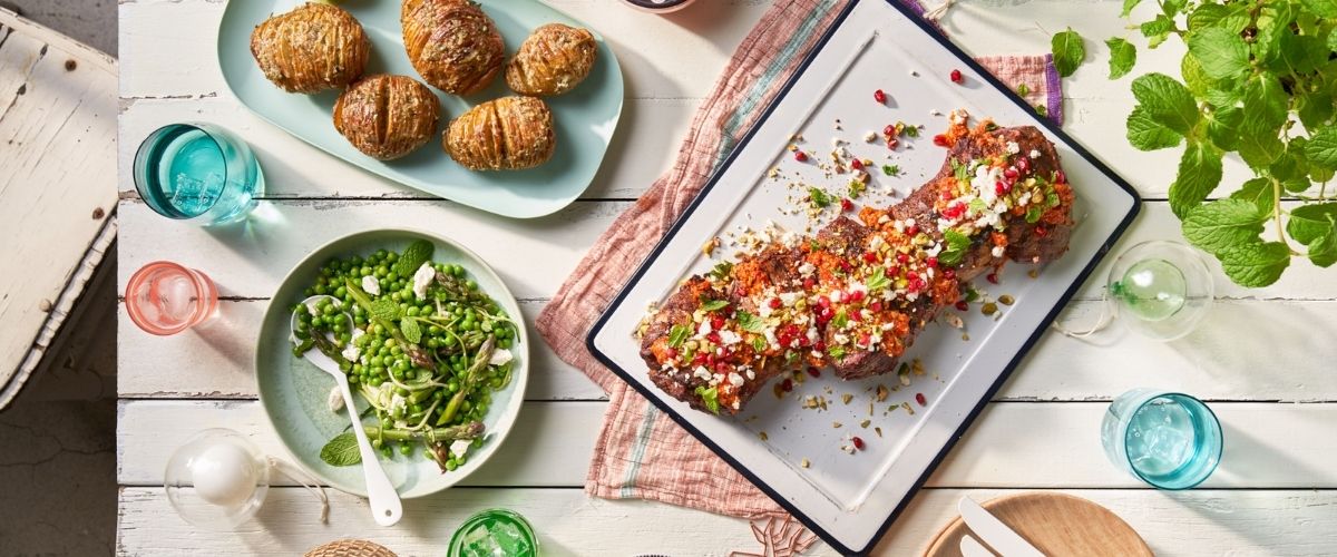Spice up your traditional lamb roast this Christmas with our BBQ’d butterflied take. The red pepper, pomegranate and feta combo is especially delicious with the crunch of pistachio. Sprinkle over more of your favourite toasted nuts, as well as a heavy garnish of fresh mint leaves to add a festive finish!