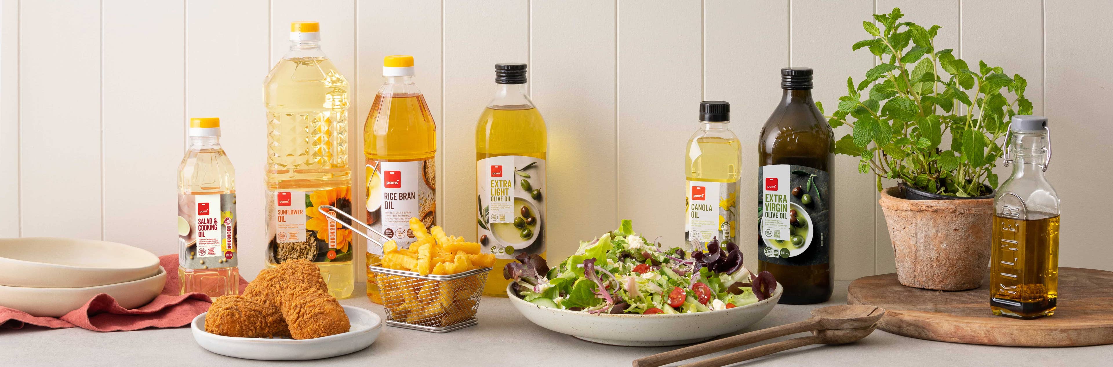 Oils are an integral part of cooking, with so many options to choose from. Frying, roasting, sautéing, drizzling, salad dressings and all, there’s an abundance of oils and one for every meal. How do you choose the right oil and which oil is best for your recipe? Here, you’ll find everything you need to know about Pams cooking oils that will help you make the best choice. We have all your bases covered! As a handy hint, all Pams Oils have usage suggestions on the front of the packaging with notes on flavour so you never get stuck!