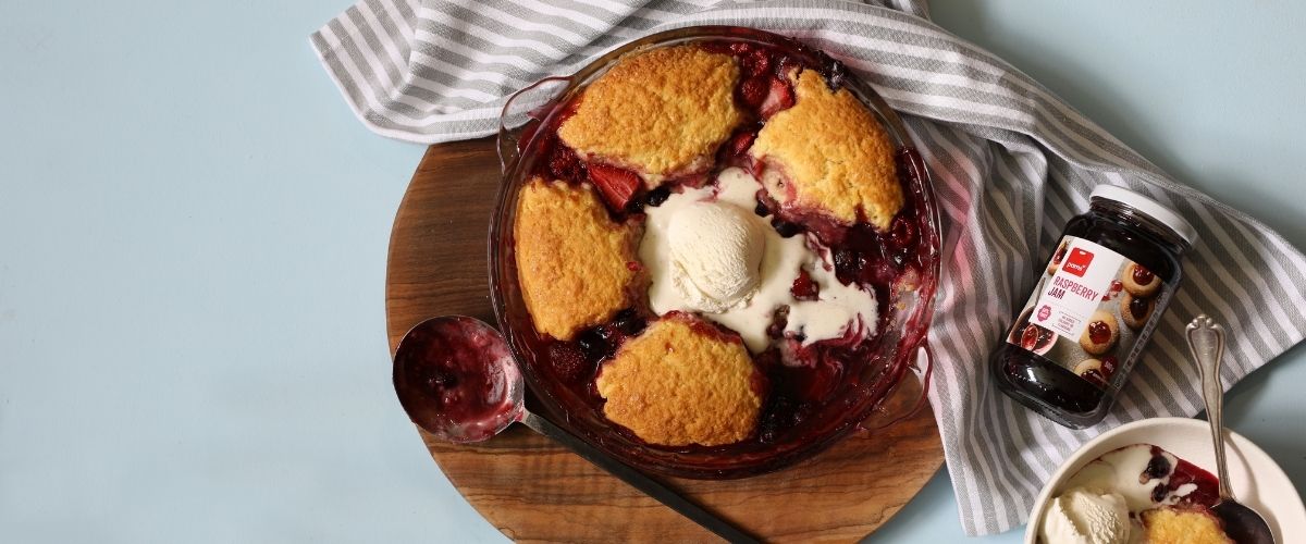 Super tasty, flavour-packed, and fragrant, we love our berries in the summer! Full of fiber, antioxidants and vitamin C, these little bites of goodness are scrumptious additions to a whole range of dishes. There’s nothing quite like a burst of berry when the sun is shining. These fruits are cheaper in the summer months while they’re in season, when local harvests are abundant. Our seasonal Pams range of fresh berries includes strawberries & blueberries. If your fridge is overflowing with berries, or your kids went overboard at a berry picking farm, then we recommend making your own simple jam. Super easy and quick to do, having sweet homemade jam on hand never disappoints – your morning toast will taste even more delicious! Or, whip up this delicious Simple Berry Cobbler for an after-dinner treat!