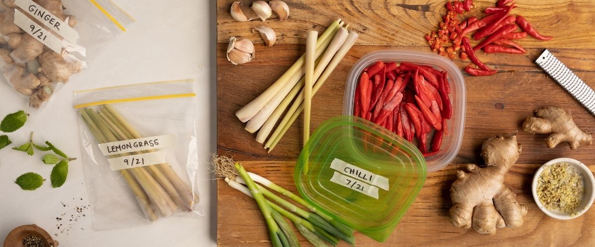 Having fresh aromatics on hand when cooking is always helpful to take the flavour up a notch. To avoid mouldy veggies and herbs going bad in your veggie drawer, pop them in the freezer to extend their use-by date and keep them fresh and flavourful.