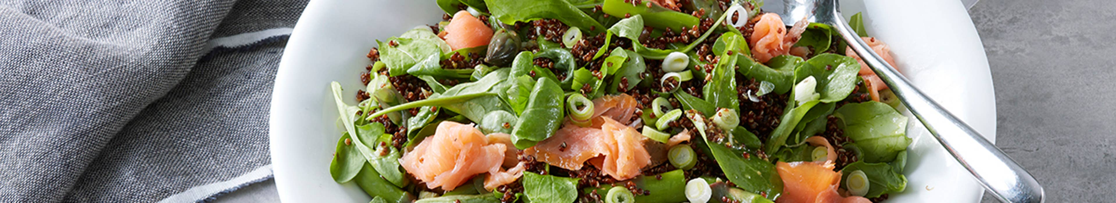 Our asparagus, quinoa and smoked salmon salad is an example of how delicious healthy meals can be! When asparagus is out of season, try substituting for snow peas or sliced courgettes.