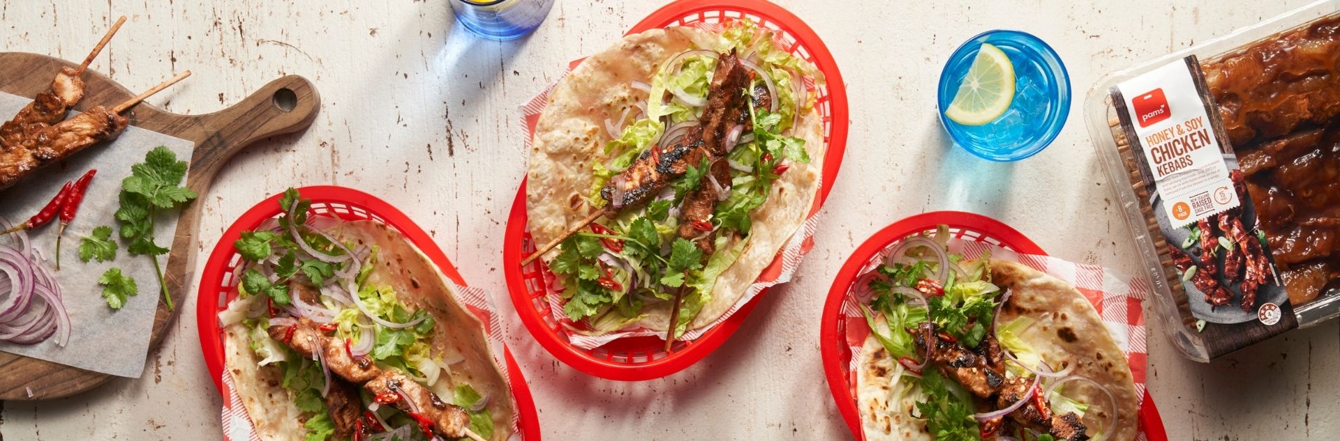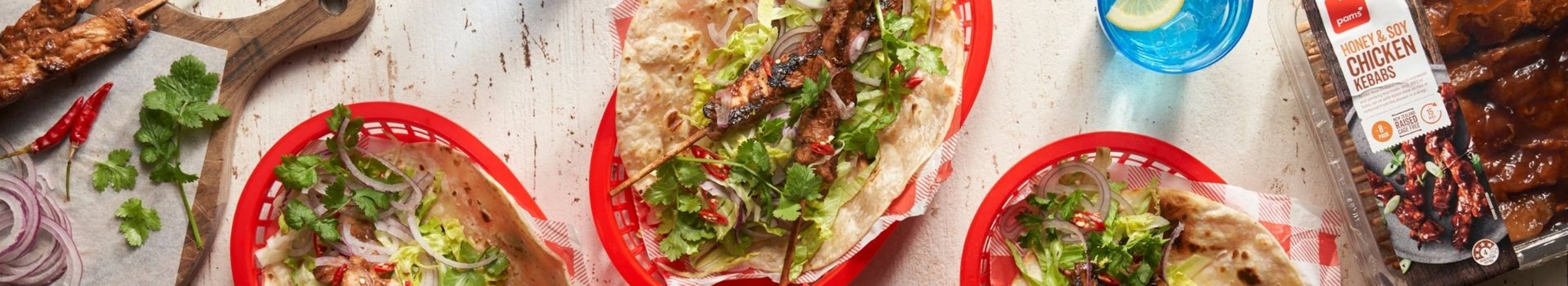 - Try this recipe with Pams Satay Chicken Kebabs or Pams Texan BBQ Pork Kebabs.