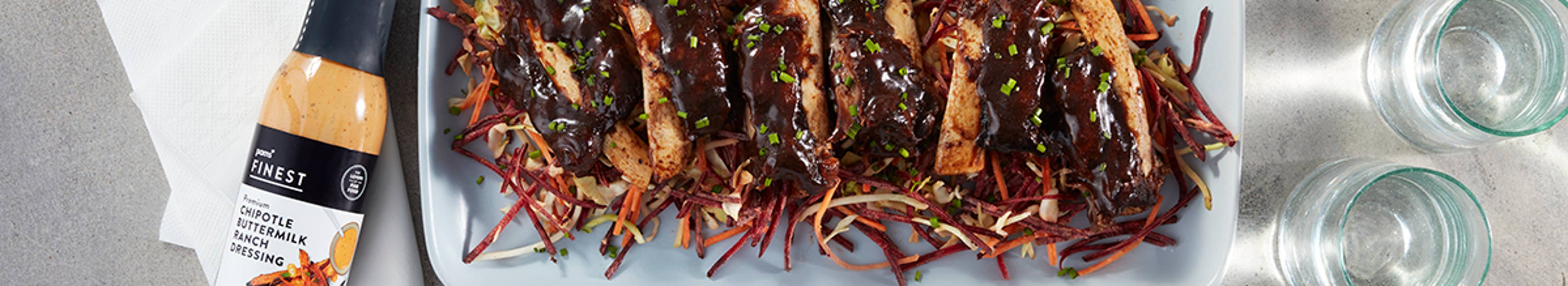 Craving ribs but just don't have the time? Our Pams Finest Ribs are quick, easy and delicious! Served with a creamy chipotle slaw, this will be your new go-to quick and easy dinner!