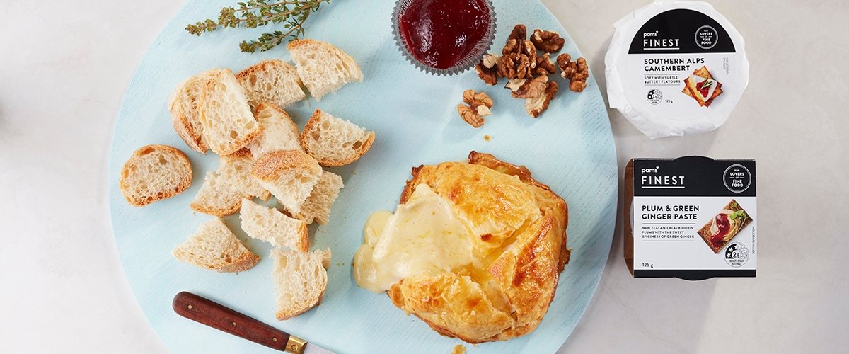 Deliciously decadent, this oozy cheese is the perfect party snack! Serve hot from the oven with bread slices, your favourite Pams Finest Fruit Paste and toasted walnuts