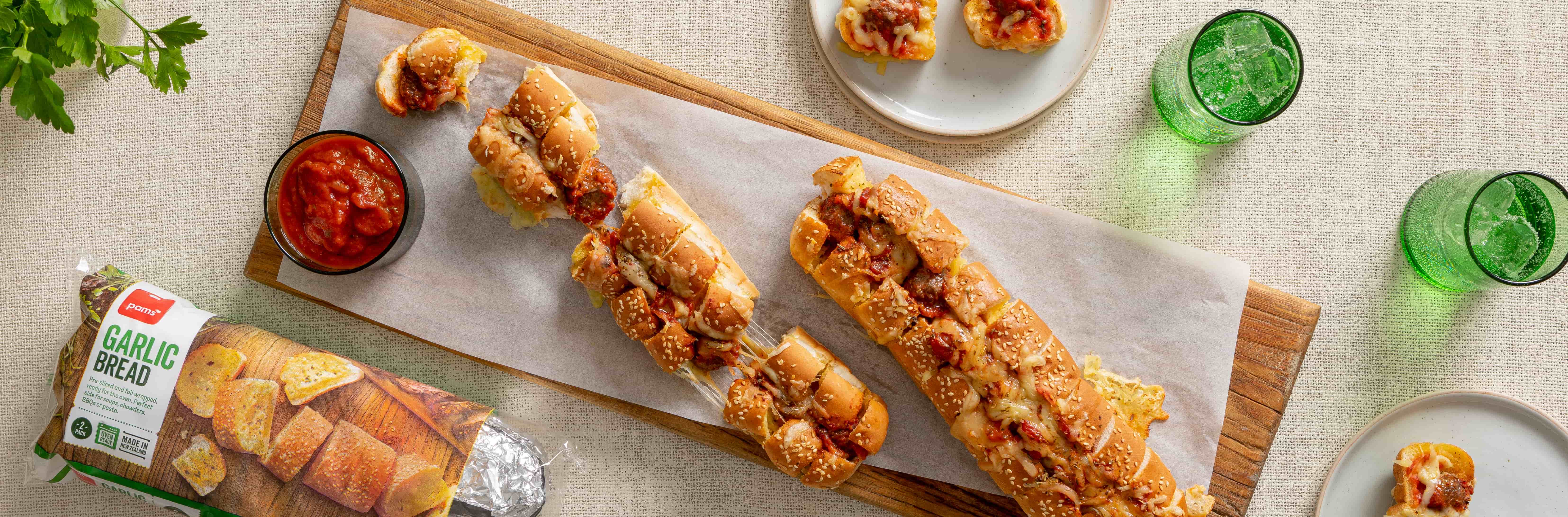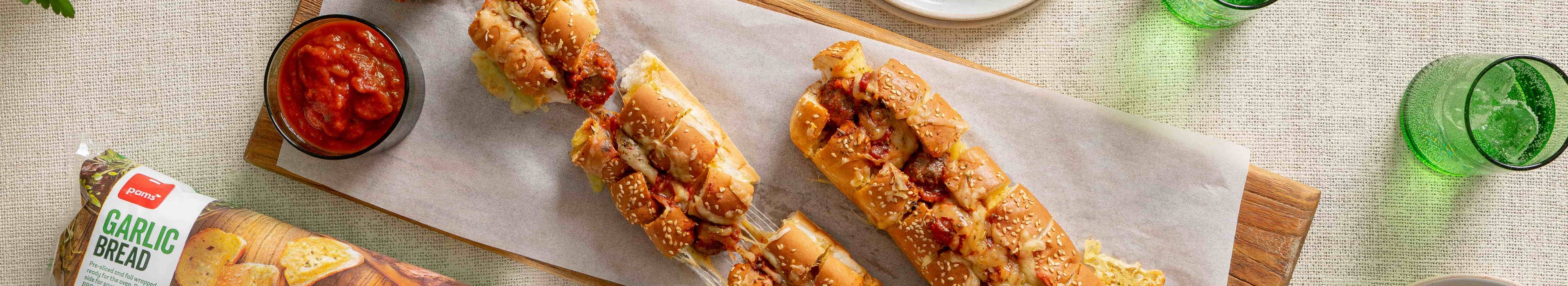 With mini meatballs, gooey cheese and a saucy centre – these garlic bread subs are perfect for feeding a hungry crowd!