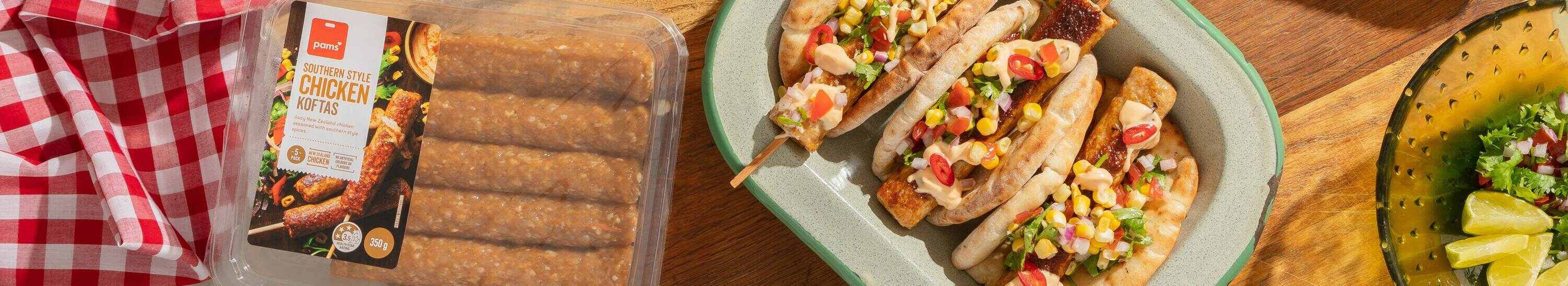 Place the shucked corn and the chicken koftas on the BBQ over a medium heat. Cook for around 15 minutes, turning regularly for even cooking, until golden brown and cooked through.