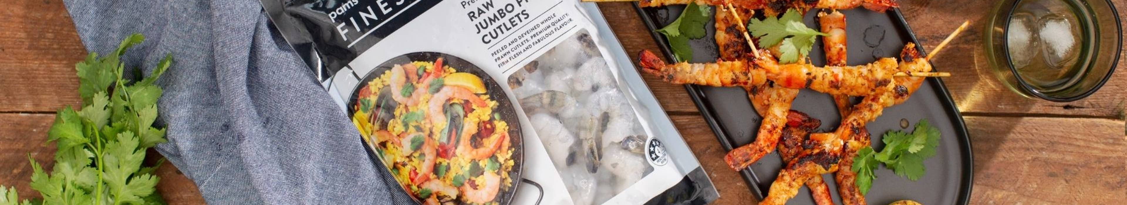 1 bag Pams Finest Jumbo Prawns, defrosted