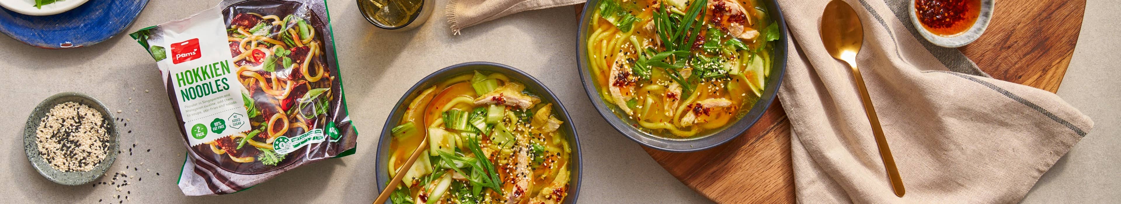 Add in the noodles and sliced chicken, cook for 2 minutes until the noodles are soft. Ladle into soup bowls and serve immediately