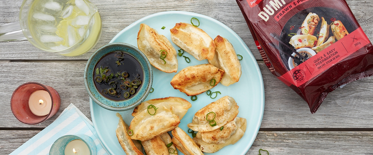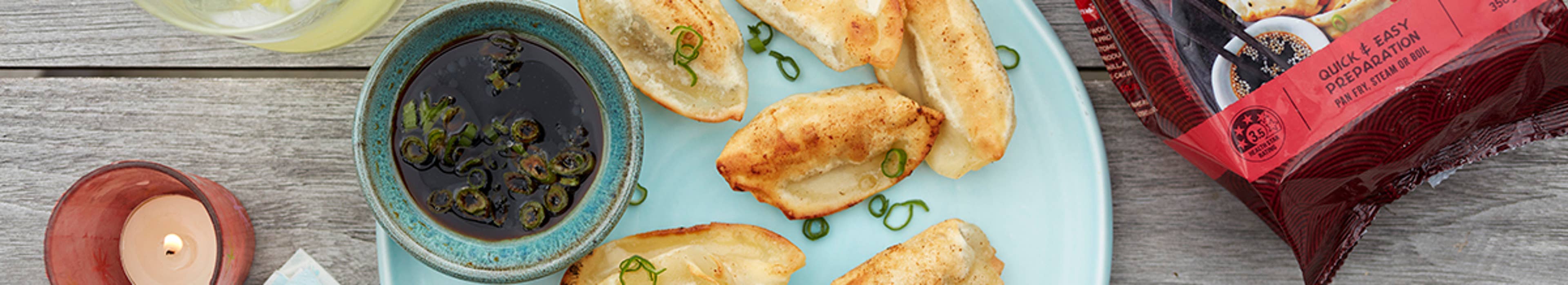Dumplings are always a crowd pleaser, but our sesame dipping sauce really takes them to the next level. The trick to cooking dumplings so they don’t stick is to heat a film of oil in the pan before the dumplings go in. From there, it’s just a matter of following the packet instructions.