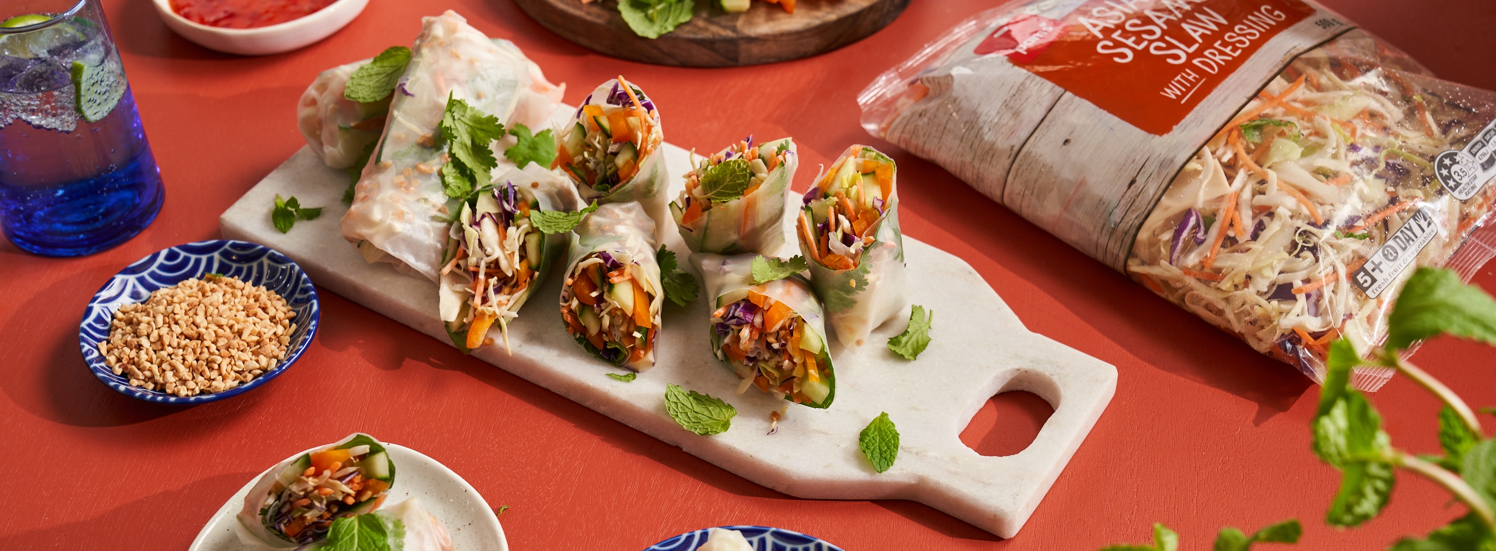 - Add an extra pop of fresh flavour with a couple of fresh mint and coriander leaves layered into each spring roll.?