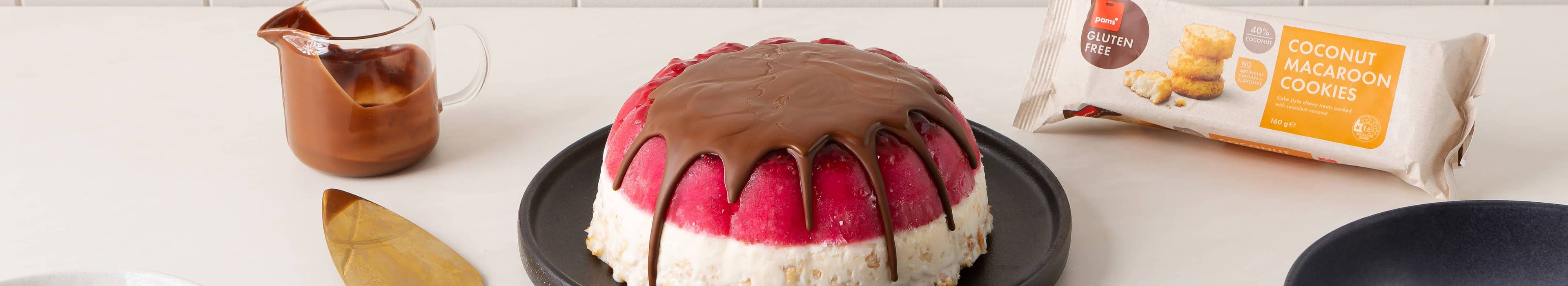Remove the jelly top ice cream cake from the freezer, and flip the bowl upside down onto a plate to unmould, removing the clingfilm. Drizzle over the chocolate shell and allow to cool enough to crack!
