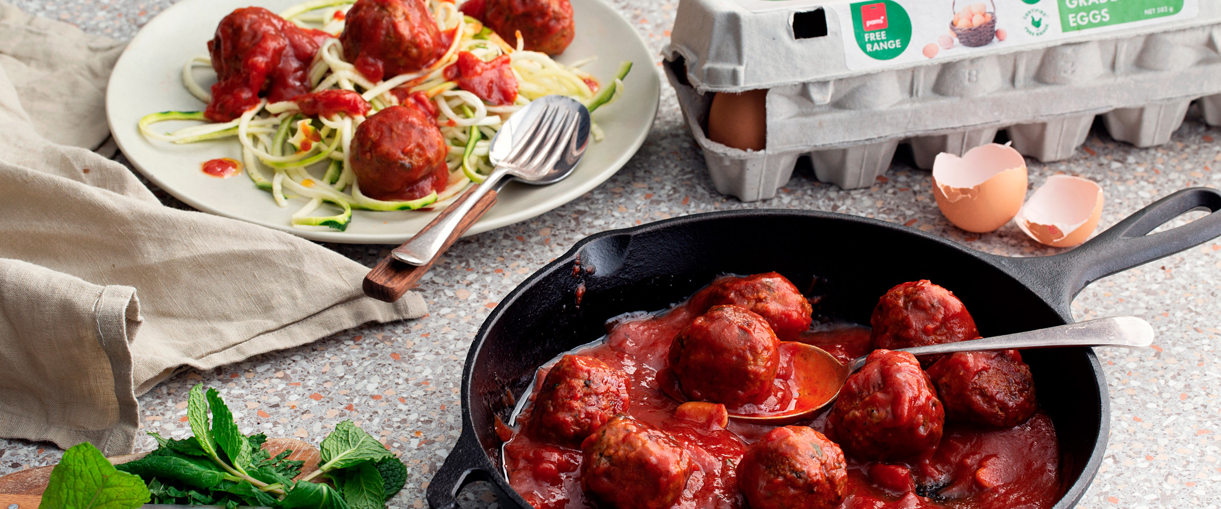 If you haven’t yet tried courgetti (courgette spaghetti), now is the time. It’s a light and healthy substitute for pasta, and delicious paired with our lamb and mint meatballs.