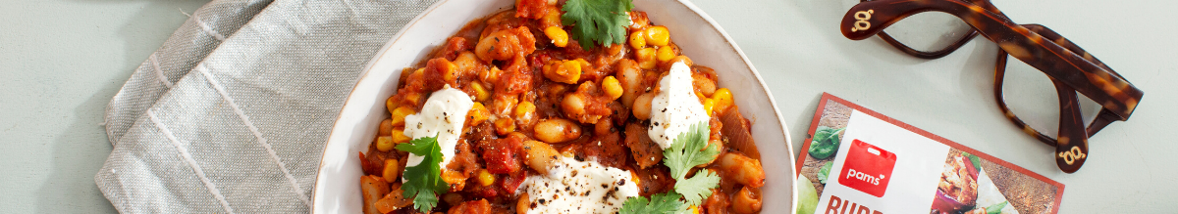 - Don’t have the Pams Corn, Bean & Capsicum Mexican Roast on hand? Sub it out with a tin of Pams Whole Kernel Corn instead.