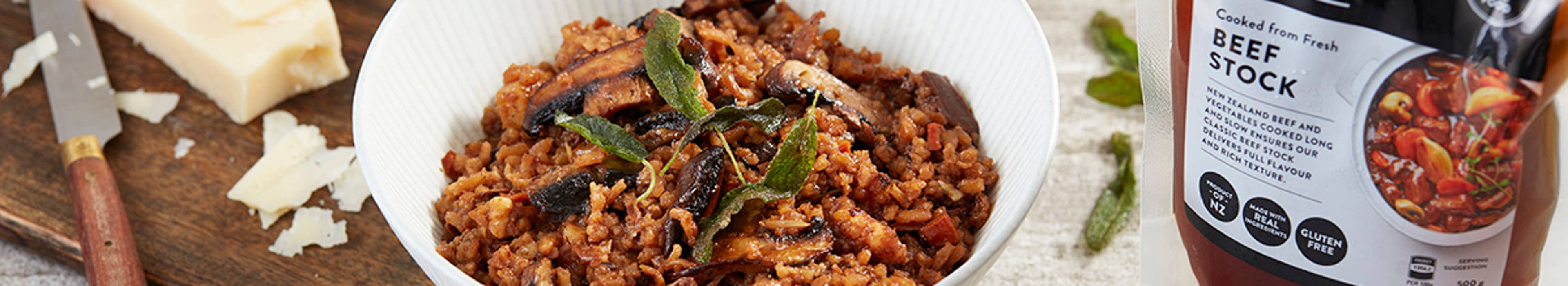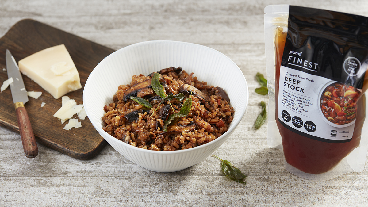 Our risotto is packed full of flavour and goodness – and best of all, it can be whipped up within half an hour! The red wine adds a delicious rich element to the dish, but this can be swapped out for an extra ¼ cup of water if you prefer.