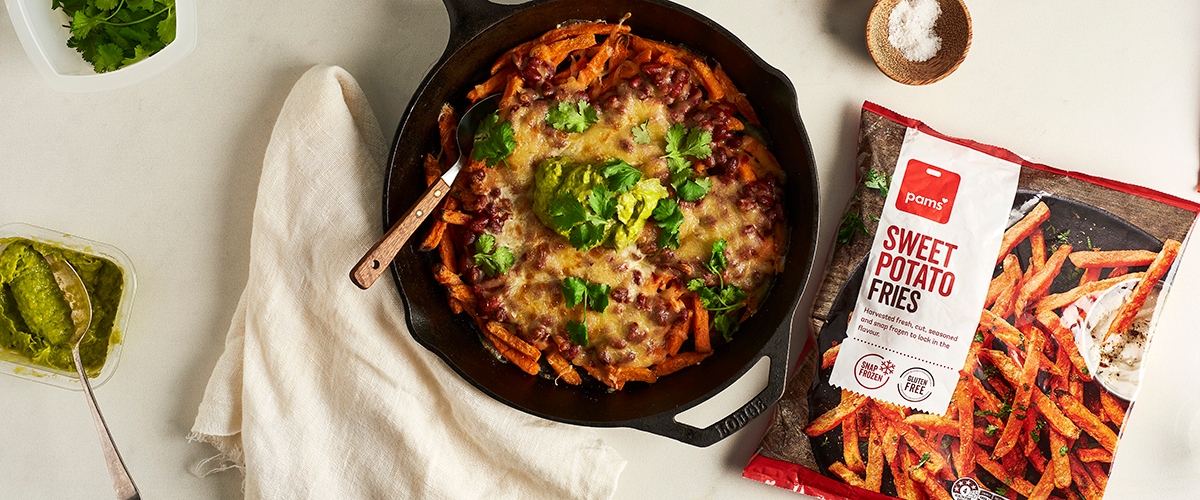 - You can use any frozen fries for this recipe. Try our Pams Crinkle Cut Fries, Pams Carrot & Parnsip Fries or any frozen fries you have in the freezer.