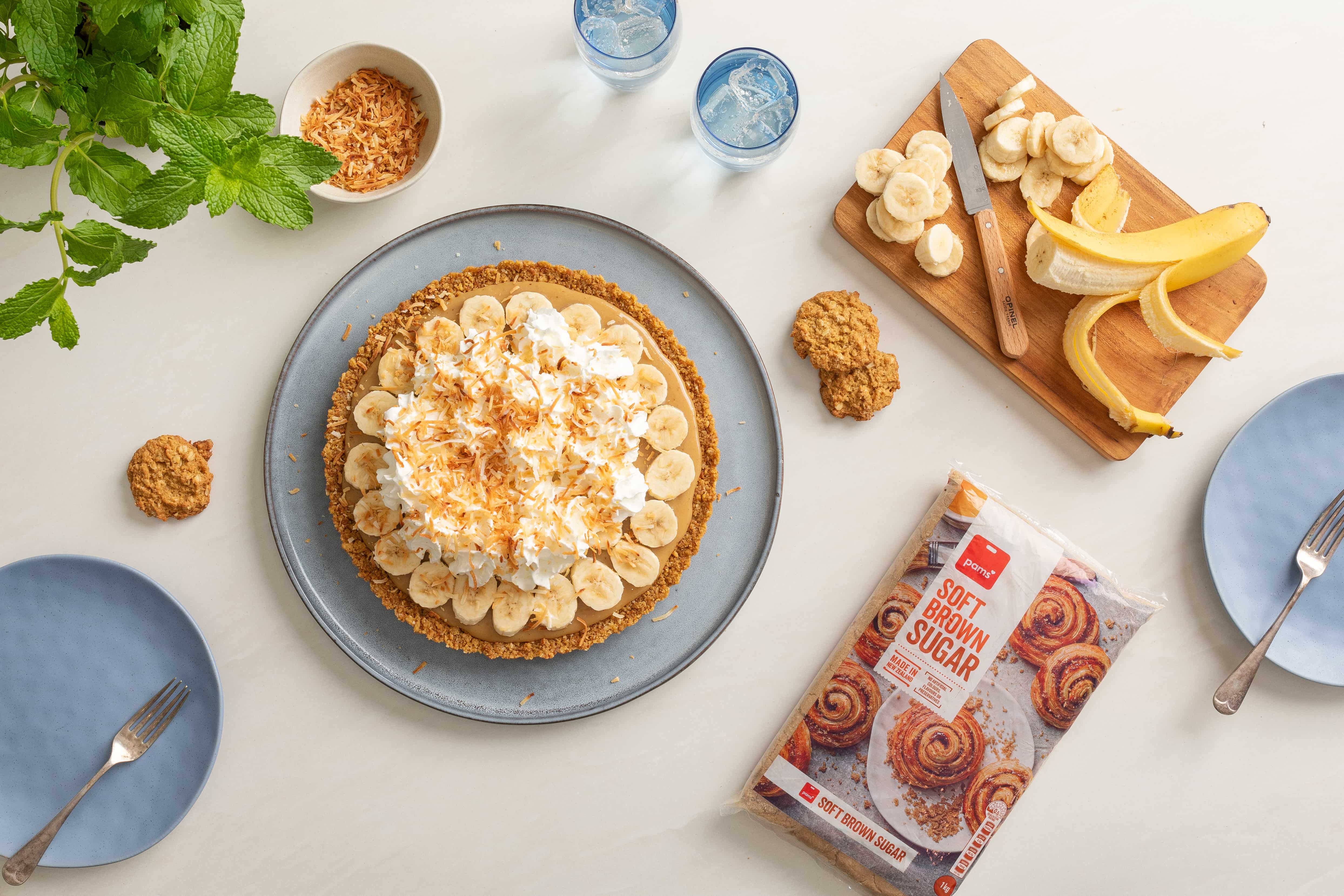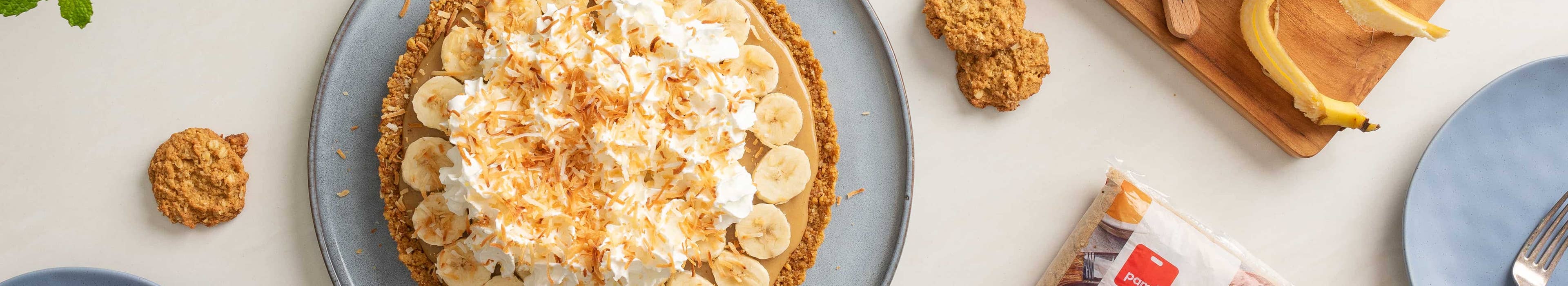 Our take on this family favourite dessert uses store-bought ANZAC biscuits as the base, making for a chewy, coconutty bite when combined with banana slices, caramel and whipped cream!