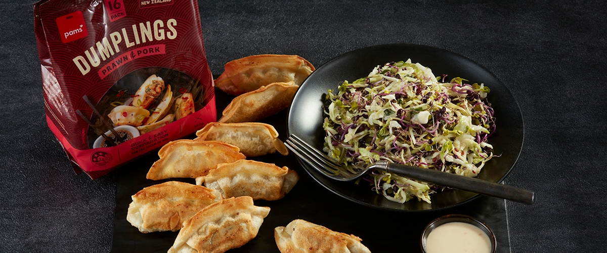 Our Pams dumplings are just as good as the ones from your local. Mix up your favourite comfort food with a crunchy Asian Slaw on the side – delish!