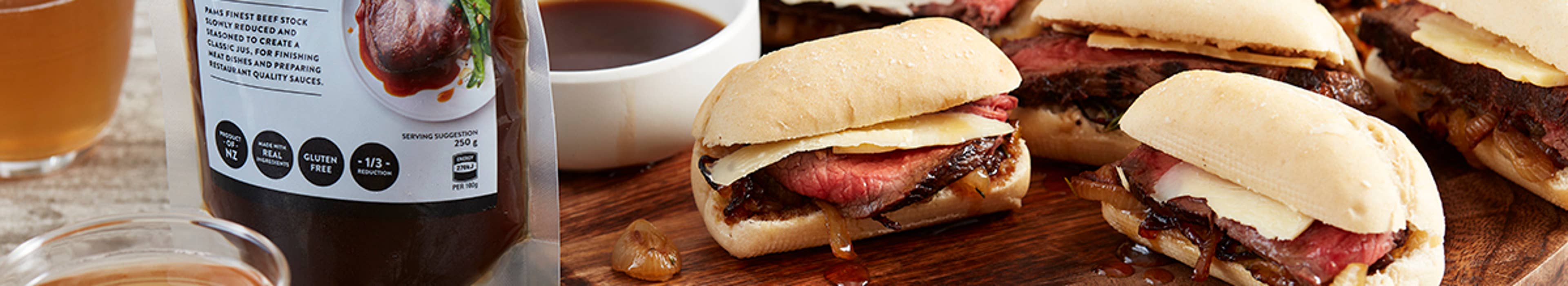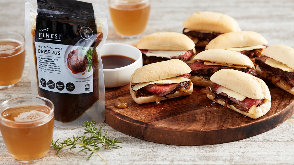 Our beef party rolls are the are just the thing for TV sports nights or other gatherings. For a green touch add some rocket leaves, and don’t forget that bowl of jus for dipping!