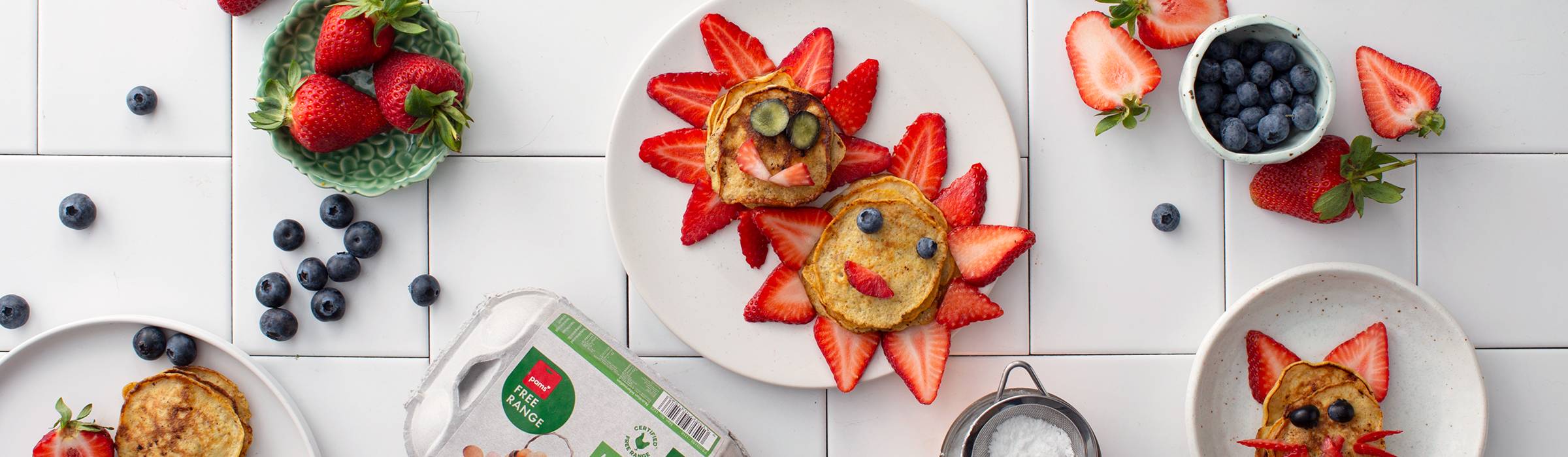 - Fresh berries are in season and delicious, let your little ones get creative and make their own edible masterpieces on their pancakes! Another great addition is a good drizzle of Pams Finest Maple Syrup or a dusting of Pams Icing Sugar.