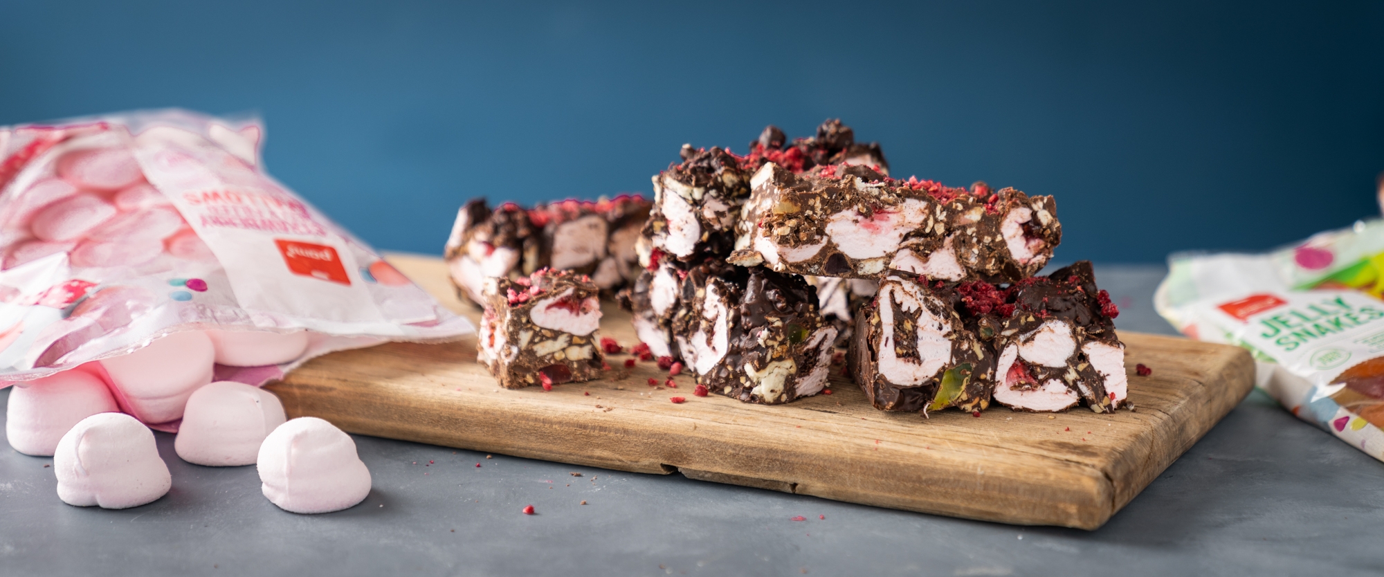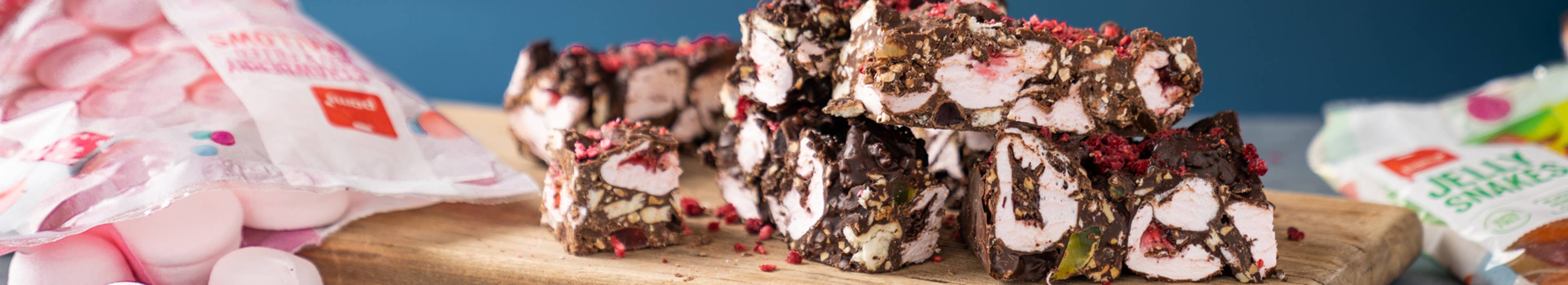 Who doesn’t love a good rocky road? Our Ultimate Rocky Road is chocka full of all the good stuff – including our tasty Strawberry Jelly Filled Mallows!